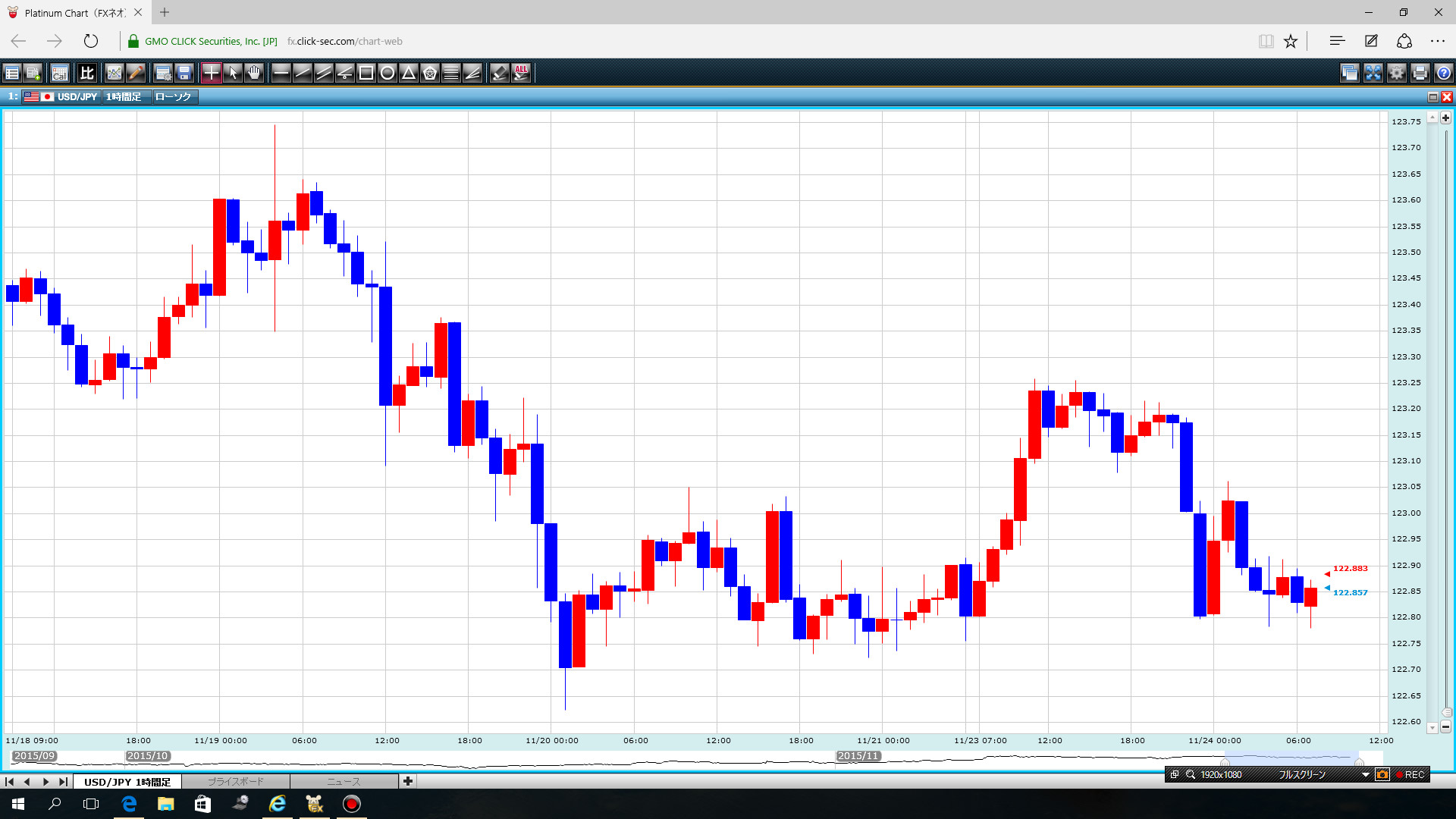 ドル/円(1h足)