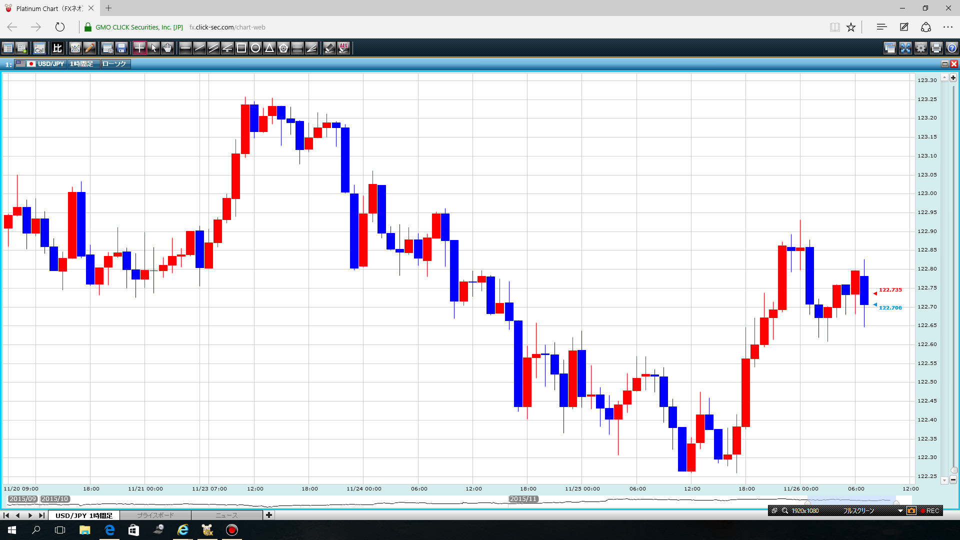 ドル/円(1h足)